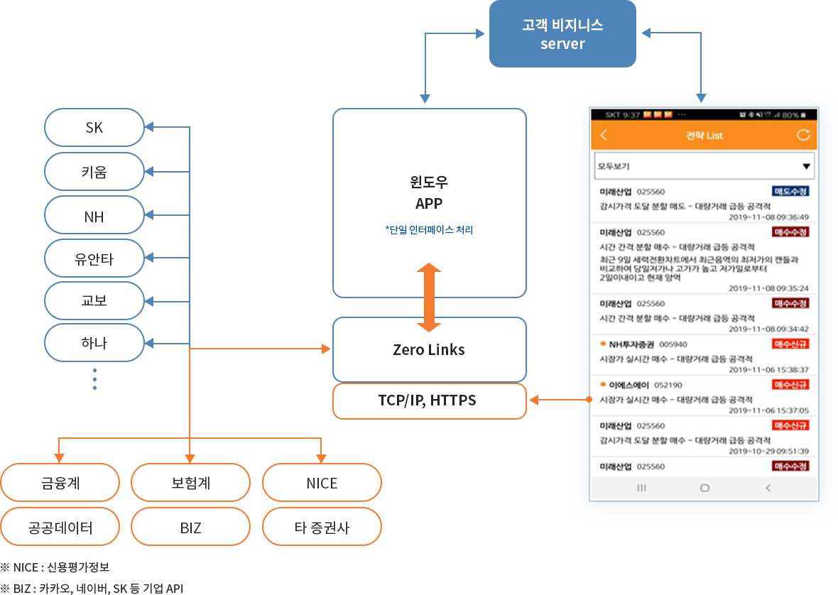 증권사 뿐만 아니라모든 API탑재 가능 구조